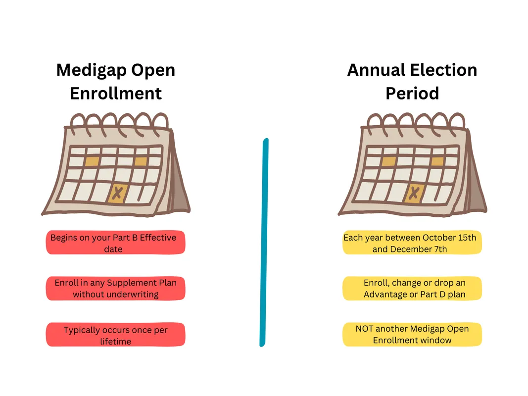 It’s also important to understand that your Medigap Open Enrollment Period is not the same as the fall Medicare Open Enrollment Period, which often causes confusion. Unlike the annual fall period, Medigap OEP dates are unique to each individual. More details on this distinction are provided below.